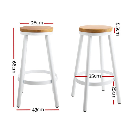 Artiss Set of 2 Metal and Bamboo Bar Stools - White
