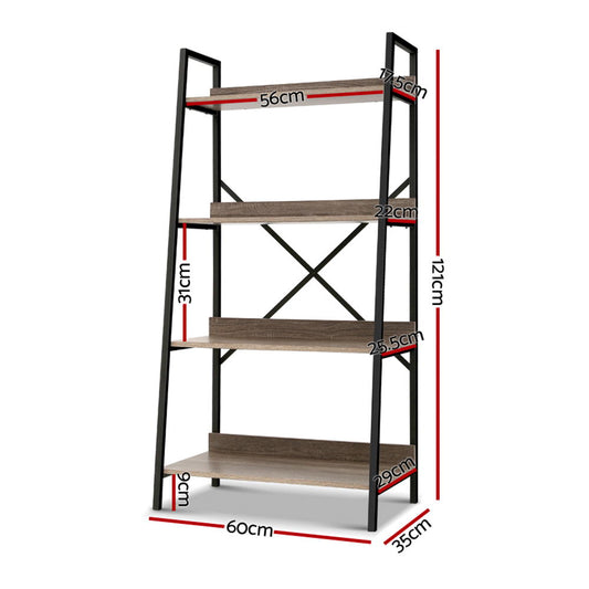 Artiss Bookshelf 4Tier Metal Bookcase Bookshelves Oak Book Shelf Display StorageRegular price $99.90 AUDRegular priceUnit price per-