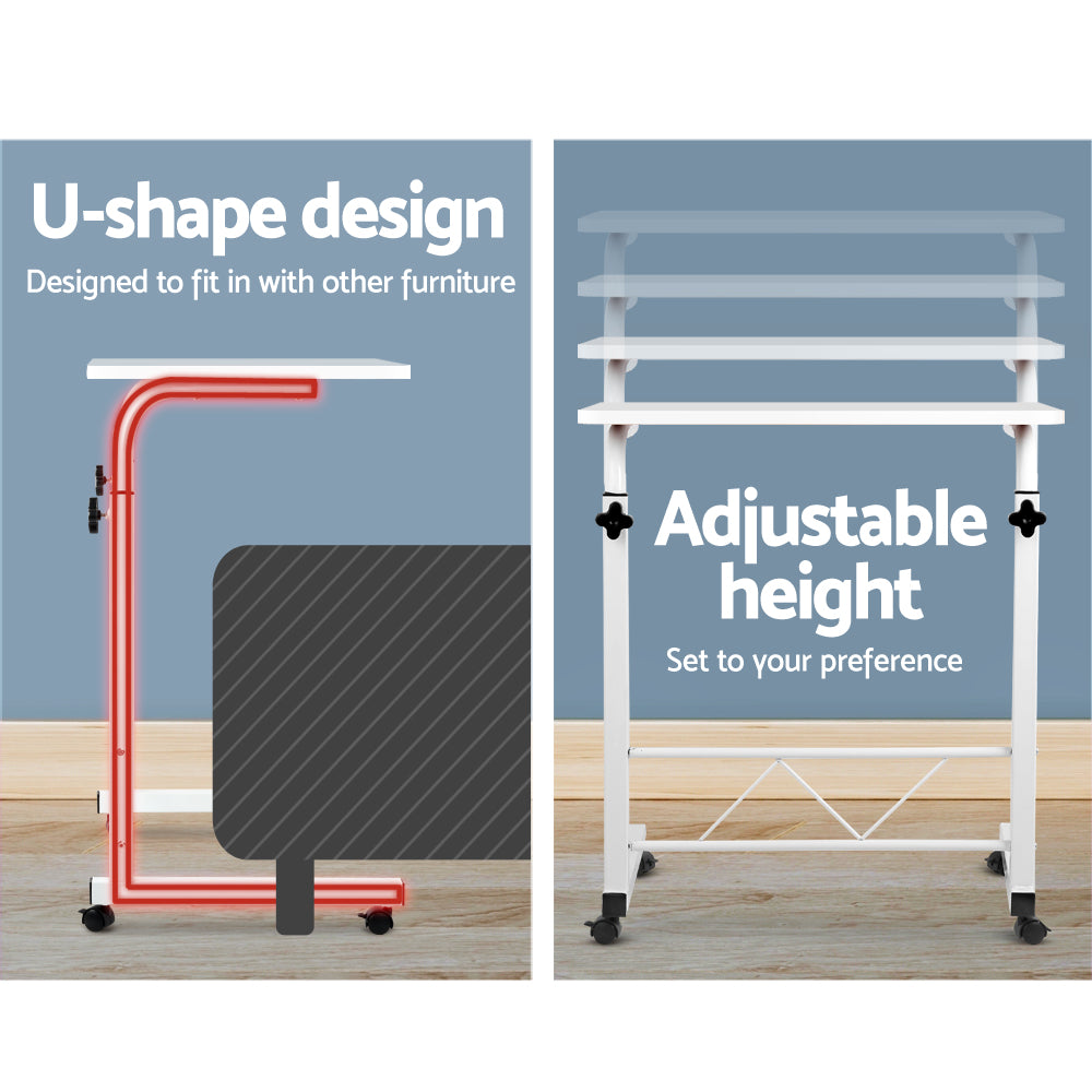 Designed to be strong and lightweight, our Mobile Laptop Desk has ample desk area to work efficiently without feeling cluttered. The height is easily adjustable to your preference and the U-shape design fits in well with most furniture such as sofas and beds to get a comfortable sitting position. The castor wheels rotate 360 degrees and can be readily locked down in place. Or, if you like, remove the detachable wheels for a more permanent fixture. Not least, with its thick 17mm MDF board desk top and sturdy powder-coated H-shape steel frame, our Mobile Laptop Desk is absolutely versatile to function as any type of table top.