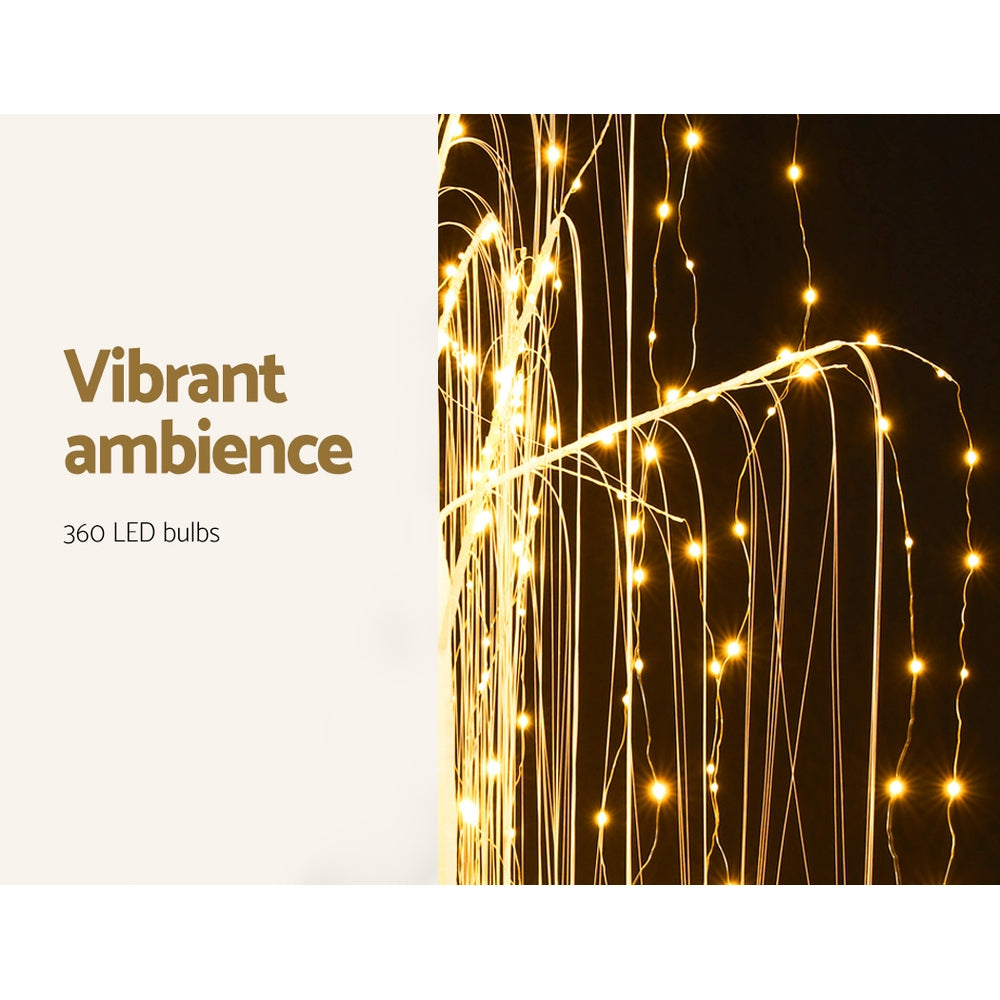 Bring the brilliance of Christmas to your home with our mesmerising Jingle Jollys LED Willow Tree. The 1.8m tall tree features 360 warm-white LED bulbs, including 120 flashing ones, strung on an ethereal and realistic-looking faux willow tree. Durably constructed with a sturdy powder-coated steel frame and metal base, you can expect to light up Christmas for many years to come. The 3m long power cable gives you more flexibility on where you can set up the tree without the need of an extension cable. Place it indoors in your living room, or outdoors on your front lawn or driveway for all your neighbours to appreciate. Do not just limit the tree to yuletide festivities – it is wonderful as decorative lighting on city streets, shopfronts and special events too. Create a lively and bright ambience throughout the season with our LED Willow Tree.
