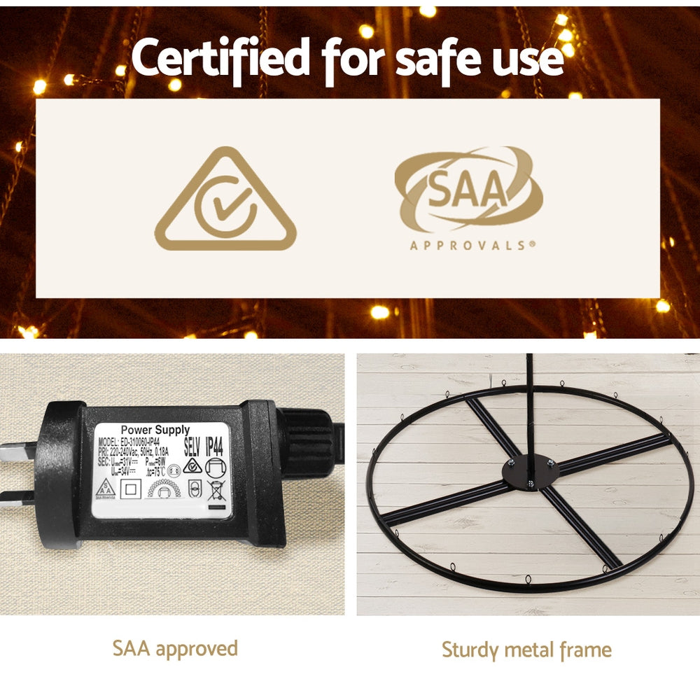 Create a dazzling display of Christmas spirit with our warm white LED Christmas Tree. This 3m tall tree is certainly an illuminating experience for everyone to enjoy near and far, day and night. Suitable for both indoor and outdoor use, the stylized tree is designed with a conical tree-like shape featuring a powder coated steel frame. Wrapped around this tree are 330 LED warm white LED lights with eight different lighting effects to bring on a mesmerizing and brilliant light show for the festive season. Easy to set up with no tools required, the tree also includes an extra long 10m cable for a hassle-free installation.